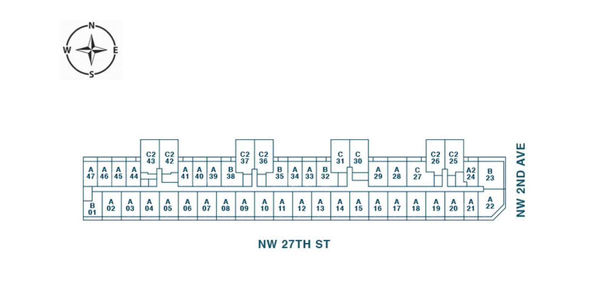 | Line A2 Lvl 2-8 | Studio / 1 Bath (519 SF) |